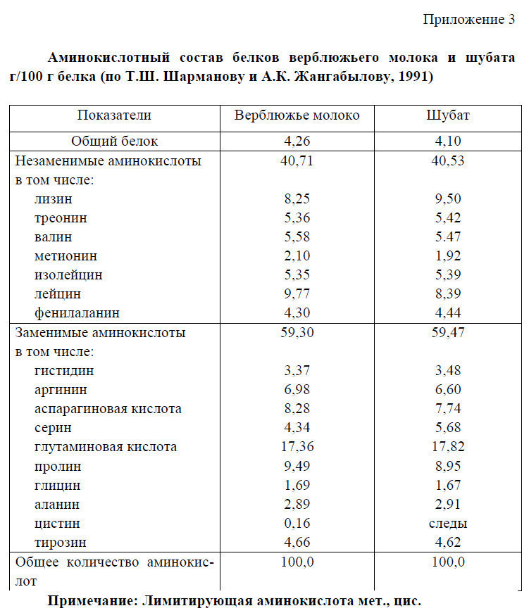 12) Молоко казахских бактрианов богаче молока туркменских дромедаров незаменимыми аминокислотами (треонин, метионин, валин, фенилаланин, лейцин, лизин+гистидин).