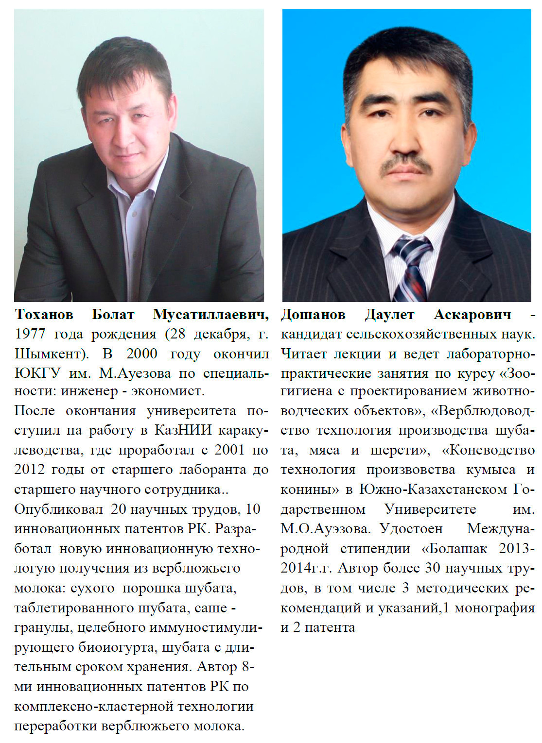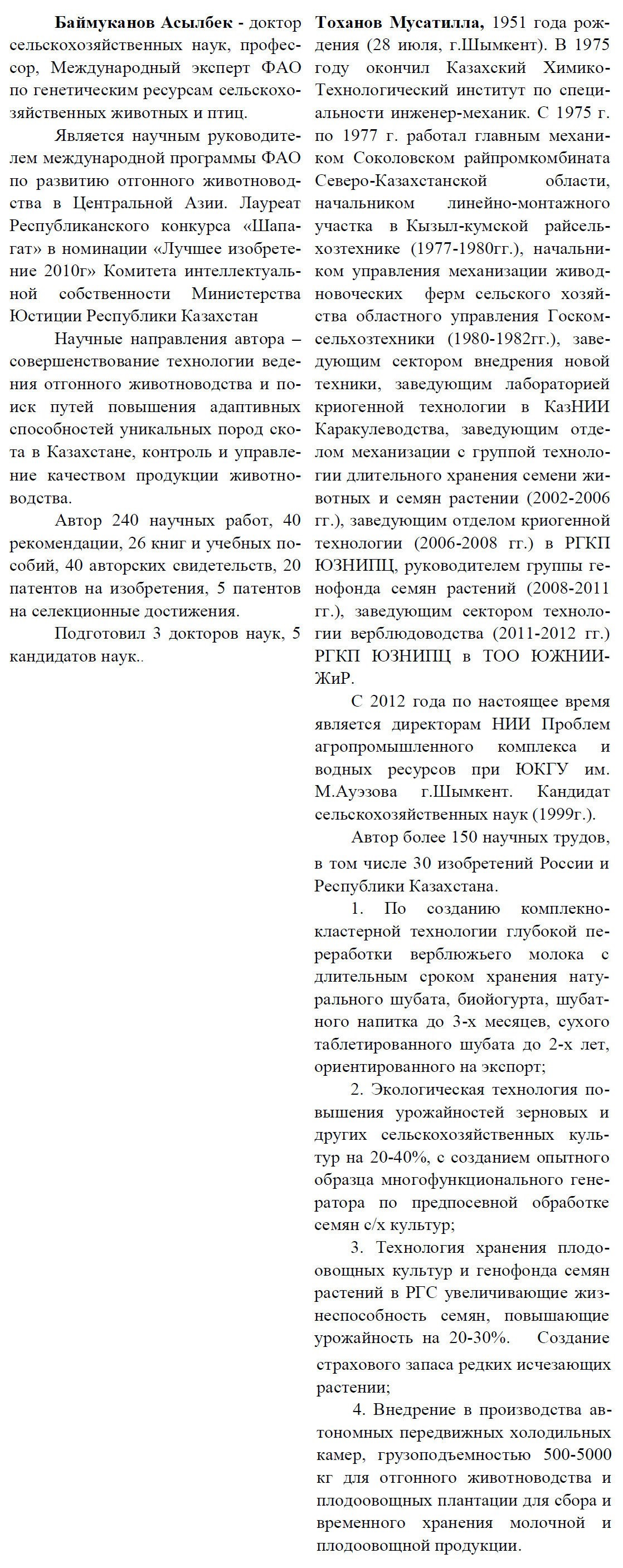 Баймуканов А., Тоханов М.Т., Баймуканов Д.А., Юлдашабаев Ю.А., Тоханов Б.М. Технология производства продукции верблюдоводства /Монография. (ISBN 978-601-310-754-7). – Алматы: Эверо, 2016. -320 с.