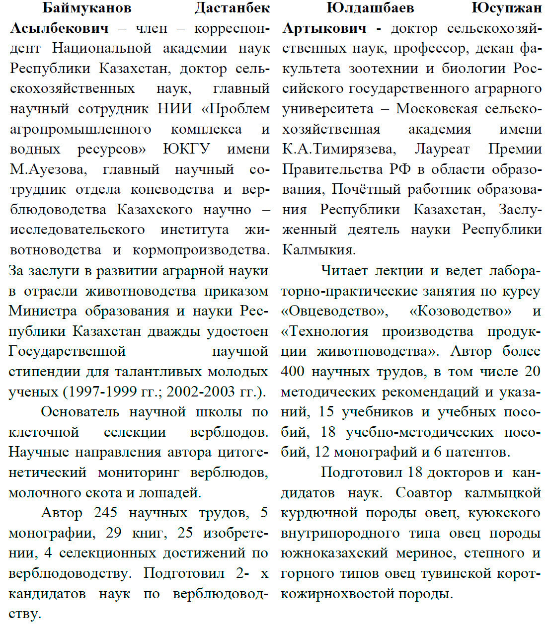 РК, член-корреспондент Академии сельскохозяйственных наук Республики Казахстан