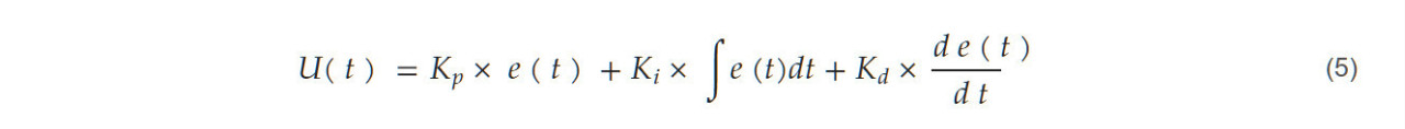 где U(t) обозначает количество управления, e(t) обозначает ошибку, Кр обозначает коэффициент пропорциональности, Ki обозначает коэффициент интеграции, и Kd обозначает коэффициент дифференциации.