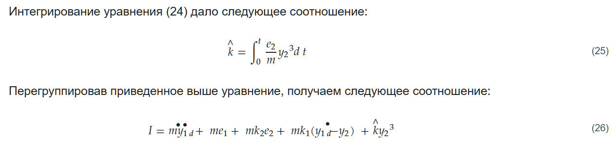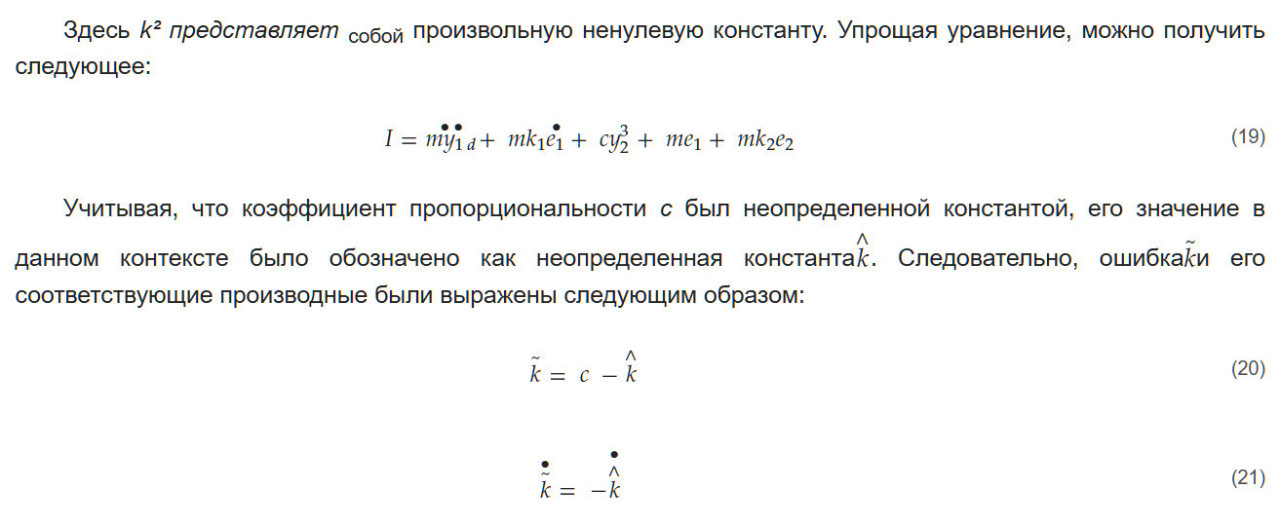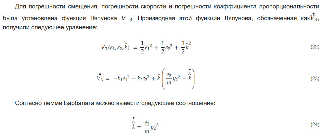 Предполагая, что в идеальном состоянии рабочая скорость устройства обнаружения глубины выкапывания обозначалась y2d, и ошибка скорости обозначалась е2, если функция Ляпунова V2 определялась для ошибки смещения и ошибки скорости, можно вывести следующие связи: