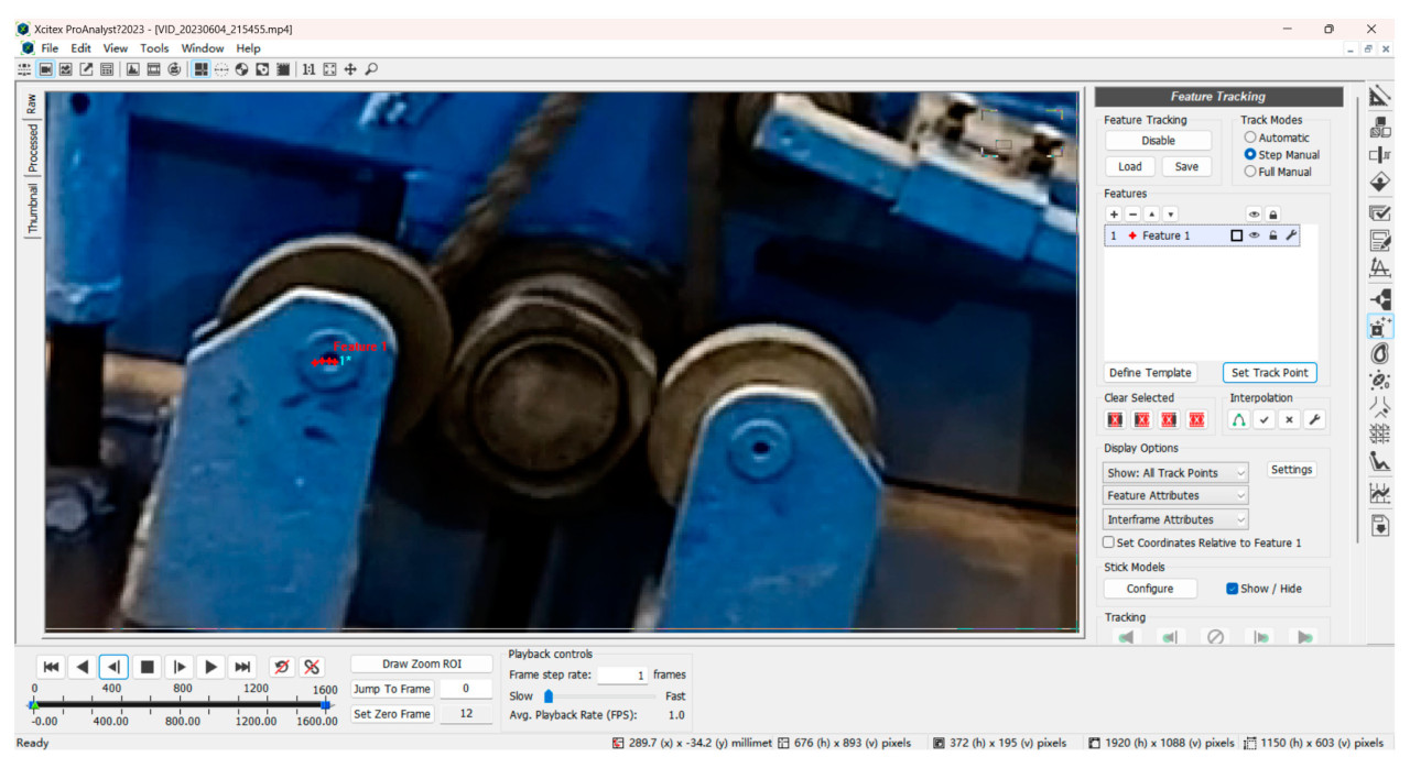 Вращательная скорость приводного двигателя возбудителя регулировалась таким образом, что возбудительный кулачок достиг вращательных скоростей 126 об/мин, 108 об/мин,105 об/мин, 120 об/мин и 135 об/мин. Подставляя скорость шнека в формулу расчета собственной частоты f - п/60, можно определить, что частоты возбуждения составляют 8,4 Гц, 7,2 Гц, 7 Гц, 8 Гц и 9 Гц соответственно. Используя высокоскоростную камеру (TS4100LR3C8512), процесс возбуждения возбудительного кулачка на переднем и заднем ситах был записан. Движение переднего и заднего сит анализировалось с использованием программного обеспечения динамического анализа высокоскоростного видео Xcitex ProAnalyst (2023), получая количество вибраций в минуту, т.е. частоту возбуждения, что можно увидеть на рисунке 21. Каждый эксперимент проводился в трех экземплярах, и впоследствии рассчитывалось среднее значение. Поскольку структура возбудителя состоит из четырех дуговых кулачков, частоты возбуждения переднего и заднего сит последовательны. Экспериментальные результаты в таблице 7 показывают, что относительные ошибки в пяти тестовых точках составляют 1,19%, 2,78%, 1,57%, 0,75% и 3,67%, с максимальной относительной ошибкой 3,67%, ниже 5%, удовлетворяя требованиям.