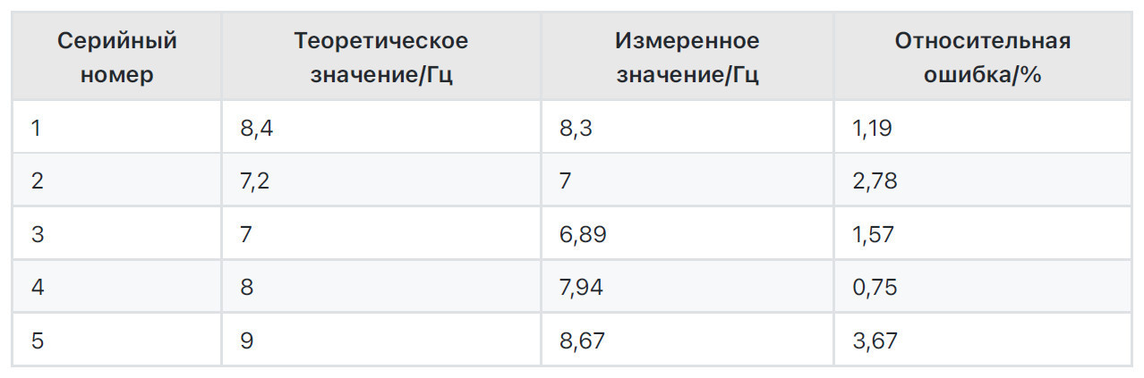 Таблица 7. Результаты испытаний частоты возбуждения.