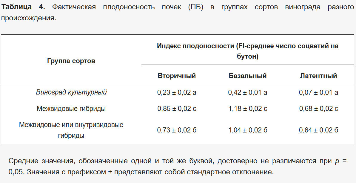 3. Межвидовые гибриды и меж-внутривидовые или внутри-межвидовые гибриды показали значительно более высокую плодоносность вторичных, базальных и латентных почек и, соответственно, более высокую способность к компенсации урожая.