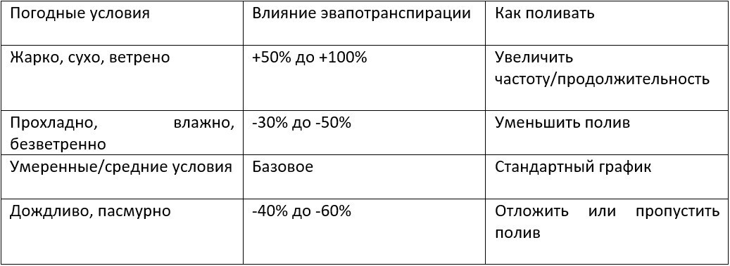 Автоматизированные системы, учитывающие погодные условия, теперь делают эти корректировки за вас. Интеллектуальные контроллеры получают данные о ET₀ от метеостанций, а затем ежедневно корректируют графики полива. Автоматизированные системы сократили потребление воды на 20% и повысили урожайность на 12%. Влияние погоды на ET₀ многие фермеры недооценивают: