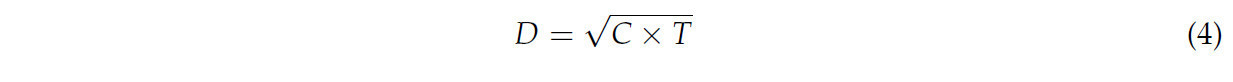 где ( D ) представляет собой индекс согласованности системы водных и земельных ресурсов с диапазоном значений [0, 1].T— комплексный индекс координации системы водных и земельных ресурсов, отражающий общий эффект согласования региональной системы водных и земельных ресурсов. 𝑇= 𝛼𝜃1+ 𝛽𝜃2, 𝛼 и 𝛽 – неопределённые коэффициенты вклада системы WLR, соответственно. Ввиду взаимного влияния и взаимодействия систем водных и земельных ресурсов, обе подсистемы оказывают одинаковое влияние, поэтому для них были установлены равные значения 𝛼 =𝛽 = 0,5 [34,35,36].
