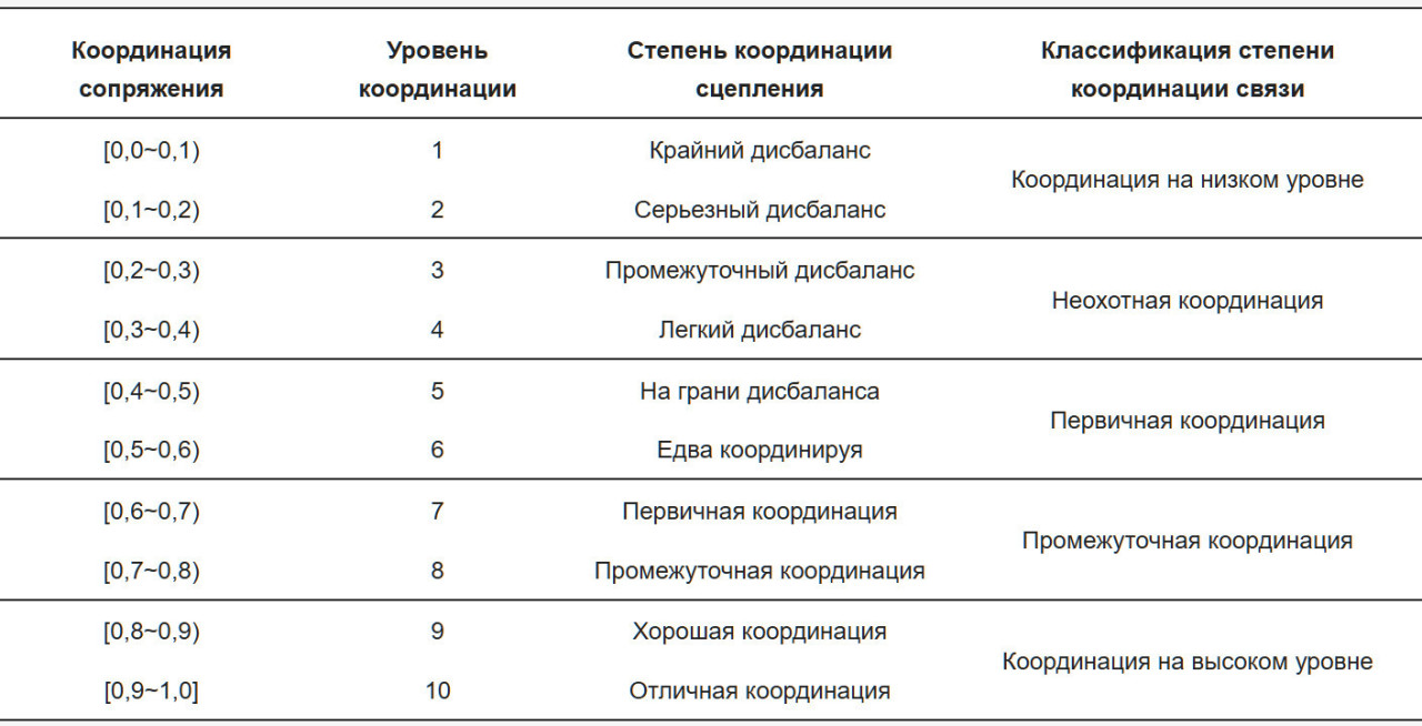 3.3.3. Классификация степени сопряженной координации