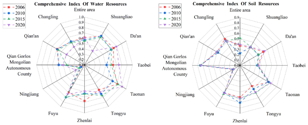 Исследование пространственно-временных вариаций водных и земельных ресурсов и их механизма воздействия на основе модели сопряженной координации: пример Западной провинции Цзилинь, Китай