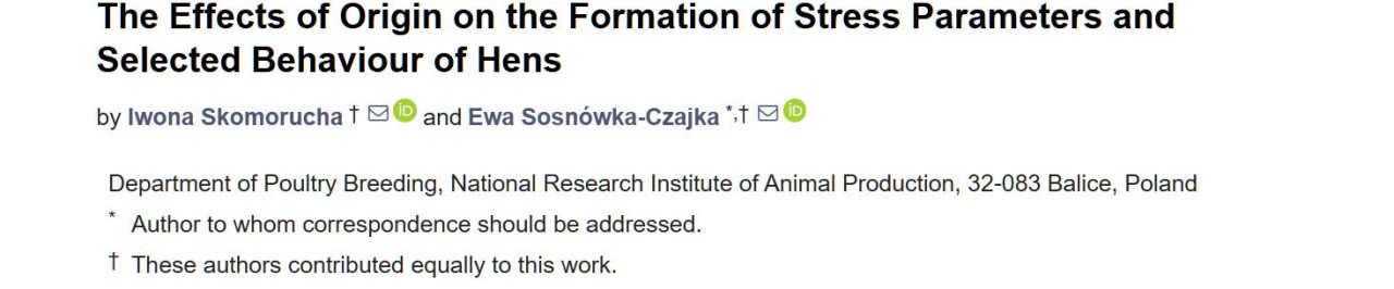 Перевод статьи «The Effects of Origin on the Formation of Stress Parameters and Selected Behaviour of Hens.» авторов Skomorucha I, Sosnówka-Czajka E., оригинал доступен по ссылке. Лицензия: CC BY. Изменения: переведено на русский язык