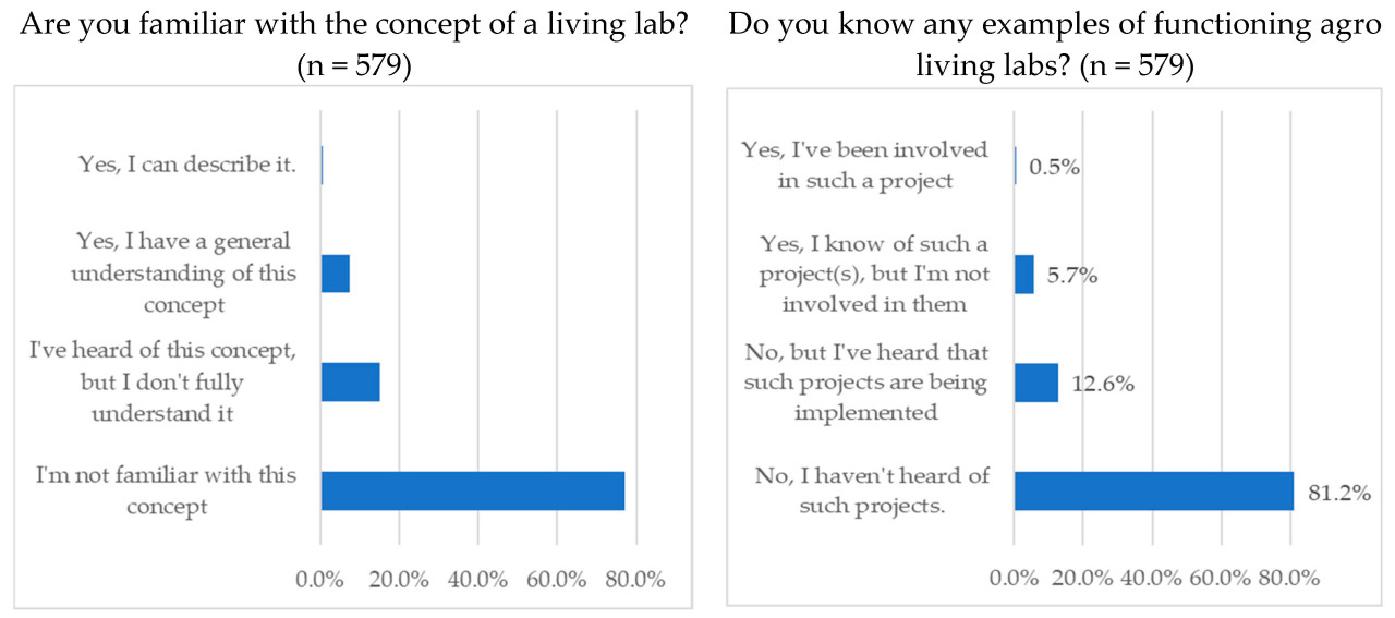 Польша, как и другие страны Европейского Союза, наблюдает возросший интерес к инициативам, которые вовлекают местные сообщества в совместное создание городов будущего [20,23]. Это привело к растущей значимости LL как платформ для совместных инноваций и сотрудничества [22]. Тем не менее, концепция агропромышленных лабораторий (ALL) как инновационных пространств, вовлекающих различные группы заинтересованных сторон в совместное создание и тестирование инноваций в сельском хозяйстве и устойчивых продовольственных системах, особенно в городском контексте, только начинает укрепляться [24,25,26]. Хотя ALL был охарактеризован в литературе, лишь немногие исследования изучали его узнаваемость, понимание его предыстории, факторов, влияющих на участие, и восприятие в местных сообществах [23]. Хотя повышение гражданской активности и содействие принятию усилий в проектах ALL остается серьезной проблемой [26,27], эти цели имеют решающее значение для их успеха [28,29,30].