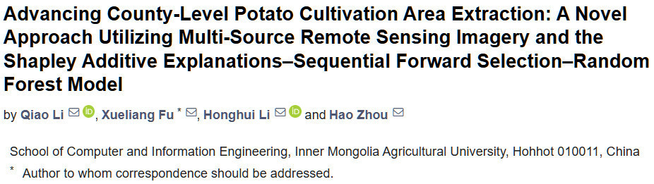 Li Q, Fu X, Li H, Zhou H. Advancing County-Level Potato Cultivation Area Extraction: A Novel Approach Utilizing Multi-Source Remote Sensing Imagery and the Shapley Additive Explanations–Sequential Forward Selection–Random Forest Model. Agriculture. 2025; 15(1):92.