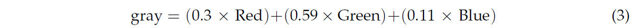 Если матрица совпадений уровней серого (GLCM) и соответствующие ей текстурные характеристики рассчитываются индивидуально для каждой полосы изображения на платформе GEE, то в результате будут получены огромные полосы текстурных данных, превышающие вычислительную память GEE. Чтобы избежать этого явления, слой в оттенках серого вычисляется до вычисления текстурных характеристик, а карты в оттенках серого синтезируются согласно уравнению (3).