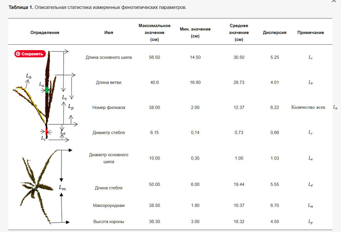 Измеренные данные в этом исследовании включали длину главного колоса, длину ветки, количество ветвей, диаметр колоса, диаметр стебля, длину стебля, диаметр коронки и высоту коронки метелки. Длина стебля относится к части от самого нижнего цветочного шёлка на главном стебле метелки до первого узла на верхушке стебля кукурузы. Maxcrowndiam и crown height относятся к максимальному диаметру коронки и максимальной высоте коронки, соответственно. Подробная диаграмма измерений фенотипических параметров представлена в Таблице 1. Все длины измеряли в выпрямленном состоянии с использованием линейки с разрешением 1 мм. Диаметр La представляет собой среднее значение диаметров пяти равноудаленных областей на главном колосе, в то время как Ld относится к длине от начальной точки первой ветви метелки до самого высокого узла растения кукурузы под метелкой. Его диаметр Lc также является средним значением пяти равноудаленных диаметров.
