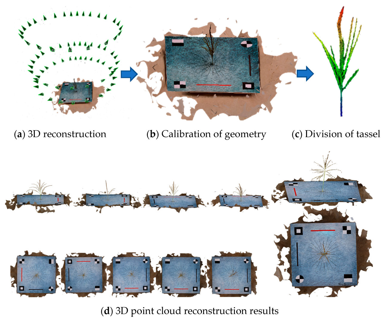 29. Wu, S.; Wen, W.; Gou, W.; Lu, X.; Zhang, W.; Zheng, C.; Xiang, Z.; Chen, L.; Guo, X. A miniaturized phenotyping platform for individual plants using multi-view stereo 3D reconstruction. Front. Plant Sci. 2022, 13, 897746. [Google Scholar] [CrossRef]