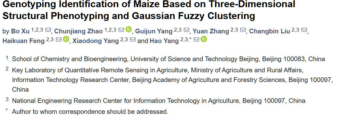 Перевод статьи «Genotyping Identification of Maize Based on Three-Dimensional Structural Phenotyping and Gaussian Fuzzy Clustering» авторов Xu B, Zhao C, Yang G, Zhang Y, Liu C, Feng H, Yang X, Yang H., оригинал доступен по ссылке. Лицензия: CC BY. Изменения: переведено на русский язык