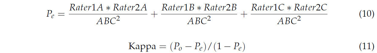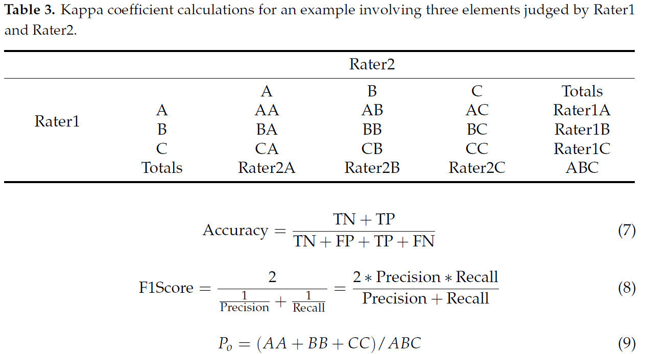 Окончательные результаты интеграции FastDTW-HC (R1–R5) были сверены с пикселями in situ «наземной проверки» в исследуемой области. Эти результаты включали 383 пикселя ячменя, 332 пикселя пшеницы и 156 пикселей рапса. Полнота, точность, достоверность и оценки F1, а также коэффициенты каппа для окончательных результатов интеграции были рассчитаны с использованием уравнений (1) и (6)–(11), которые приведены в таблице 3 .