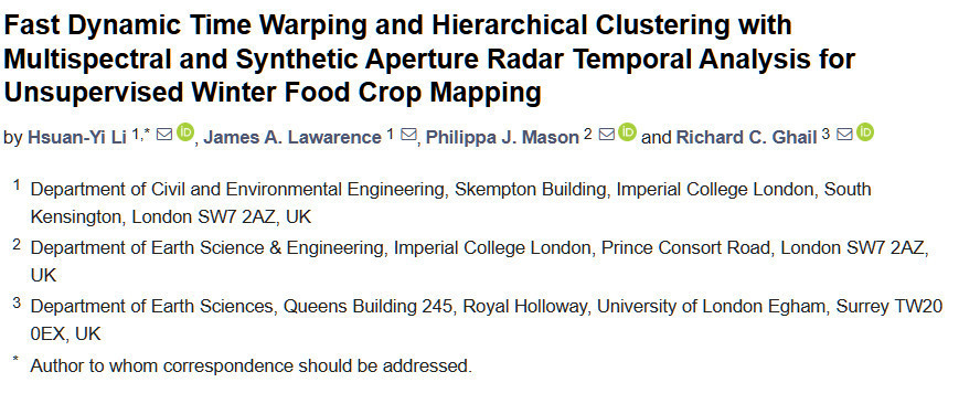 Li H-Y, Lawarence JA, Mason PJ, Ghail RC. Fast Dynamic Time Warping and Hierarchical Clustering with Multispectral and Synthetic Aperture Radar Temporal Analysis for Unsupervised Winter Food Crop Mapping.
