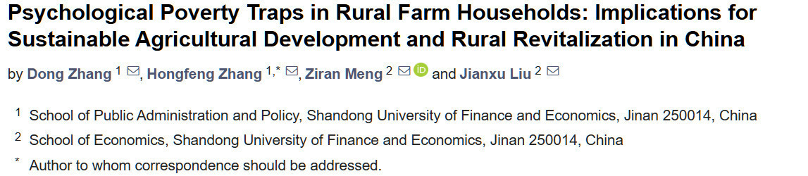 Психологические ловушки бедности в сельских фермерских хозяйствах: последствия для устойчивого развития сельского хозяйства и возрождения села в Китае