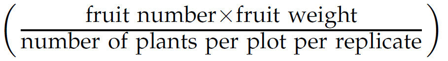 и рассчитывали в кг на 100 м² (одна ар). Для измерений плодов (длина, диаметр и толщина мякоти) брали минимум шесть плодов с делянки/повторности. Данные собирали и систематизировали с помощью программного обеспечения Microsoft Excel (Microsoft Corporation, Редмонд, Вашингтон, США).