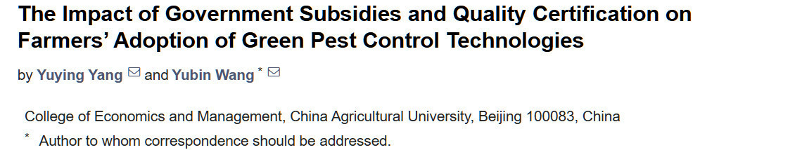 Yang Y, Wang Y. The Impact of Government Subsidies and Quality Certification on Farmers’ Adoption of Green Pest Control Technologies. Agriculture. 2025; 15(1):35. https://doi.org/10.3390/agriculture15010035