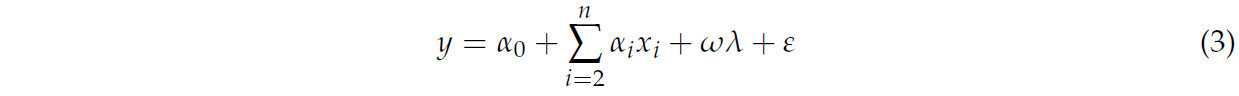 Во-вторых, λ подставляется в уравнение регрессии (3), чтобы исключить смещение выборки, вызванное самоизбирательностью фермеров при принятии решений о применении технологий. Затем используется метод наименьших квадратов (МНК) для оценки факторов, влияющих на принятие фермерами экологичных технологий борьбы с вредителями: