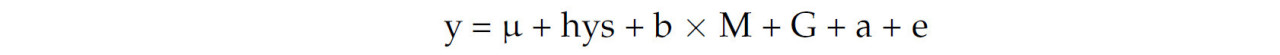 Мы проанализировали ассоциации генотипов/гаплотипов с пятью признаками молочной продуктивности за первую и вторую лактации, используя модуль MIXED в программном обеспечении SAS 9.2 (SAS Institute Inc., Кэри, Северная Каролина, США). Для анализа ассоциаций использовалась следующая модель животных: