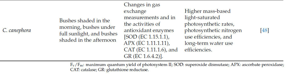 47. Pompelli, M.F.; Martins, S.C.V.; Antunes, W.C.; Chaves, A.R.M.; DaMatta, F.M. Photosynthesis and photoprotection in coffee leaves is affected by nitrogen and light availabilities in winter conditions. J. Plant Physiol. 2010, 167, 1052–1060. [Google Scholar] [CrossRef] [PubMed]