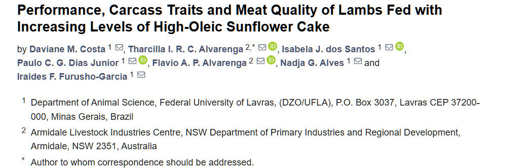 Перевод статьи «Performance, Carcass Traits and Meat Quality of Lambs Fed with Increasing Levels of High-Oleic Sunflower Cake» авторов Costa DM, Alvarenga TIRC, dos Santos IJ, Dias Junior PCG, Alvarenga FAP, Alves NG, Furusho-Garcia IF., оригинал доступен по ссылке. Лицензия: CC BY. Изменения: переведено на русский язык