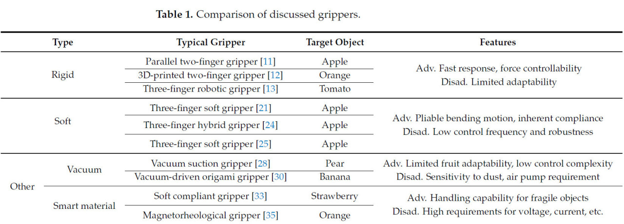 25. Chen, K.; Li, T.; Yan, T.; Xie, F.; Feng, Q.; Zhu, Q.; Zhao, C. A soft gripper design for apple harvesting with force feedback and fruit slip detection. Agriculture 2022, 12, 1802. [Google Scholar] [CrossRef]