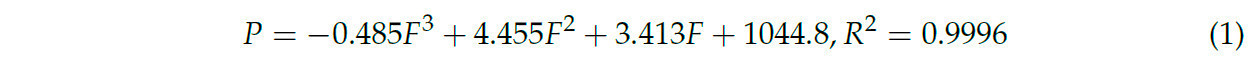 где P и F — давление и сила. 𝑅² — коэффициент детерминации, который количественно определяет степень соответствия.