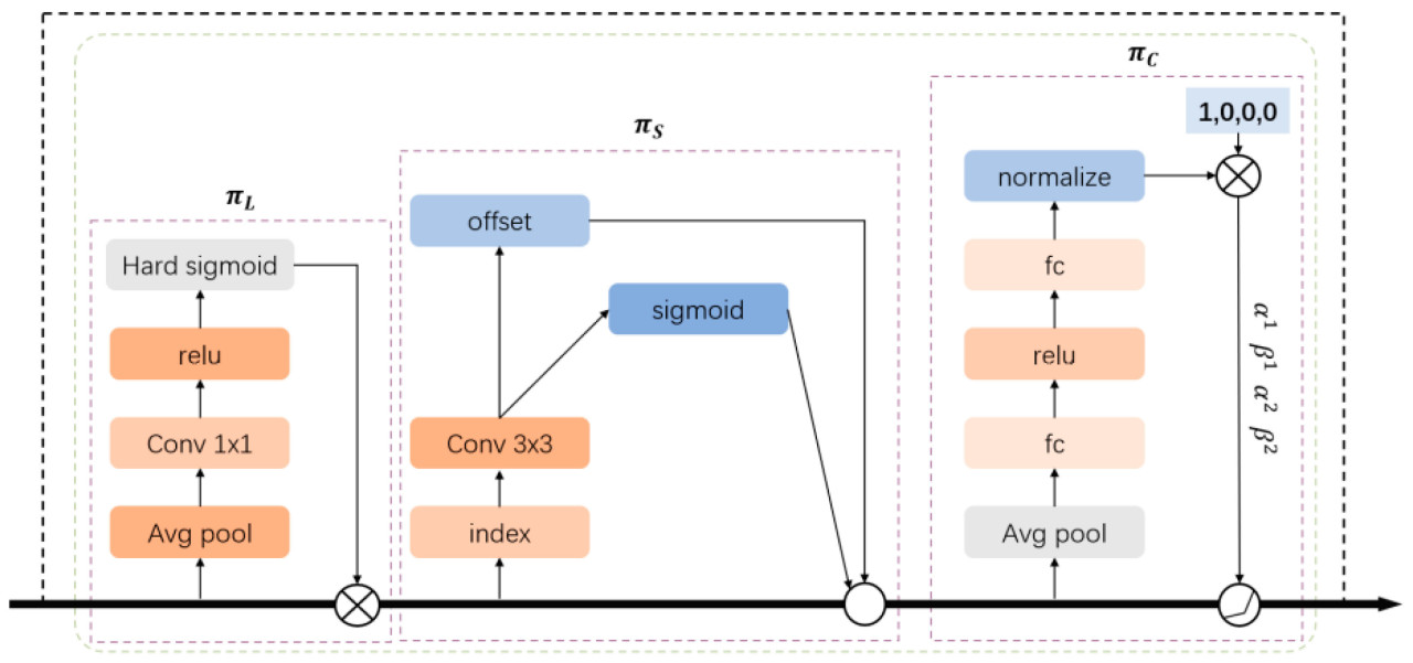 Хотя традиционные алгоритмы направлены на улучшение головы обнаружения, им не хватает единого подхода. DyHead - это перспективная структура головы обнаружения объектов, специально разработанная для решения проблем сложных сцен, таких как обнаружение поведения молочных коров в условиях фермы. Эти сцены характеризуются различными размерами объектов, широким диапазоном поведений (например, кормление, лежание, стояние, и питье), и сходствами между определенными поведениями. DyHead эффективно адаптируется к этому разнообразию и сложности через динамический механизм внимания. Его структура проиллюстрирована на Рисунке 9. Он использует модули внимания, учитывающие масштаб (scale-aware), пространство (spatial-aware), и задачу (task-aware), для управления задачами обнаружения разнообразных объектов единым и гибким способом, enabling алгоритму лучше понимать и распознавать различные поведения коров.