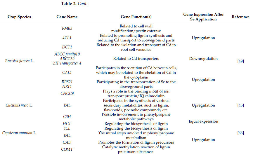 63. Cui, J.; Liu, T.; Li, Y.; Li, F. Selenium reduces cadmium uptake into rice suspension cells by regulating the expression of lignin synthesis and cadmium-related genes. Sci. Total Environ. 2018, 644, 602–610. [Google Scholar] [CrossRef] [PubMed]