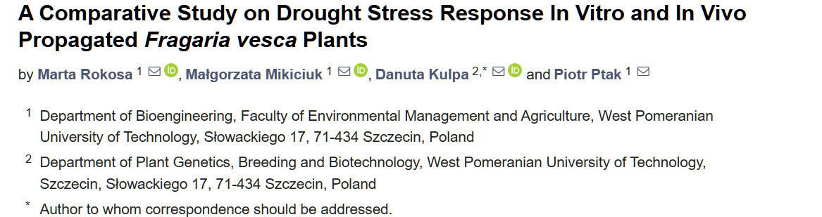 Перевод статьи «A Comparative Study on Drought Stress Response In Vitro and In Vivo PropagatedFragaria vescaPlants» авторов Rokosa M, Mikiciuk M, Kulpa D, Ptak P., оригинал доступен по ссылке. Лицензия: CC BY. Изменения: переведено на русский язык