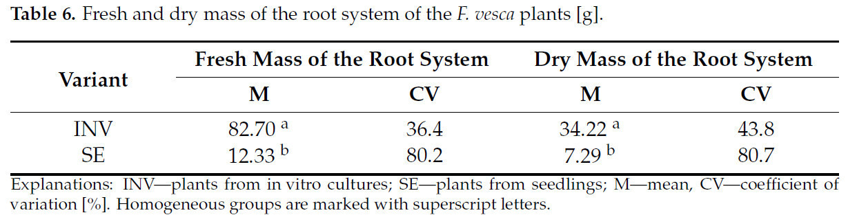 Подобно урожайности плодов, как сырая, так и сухая масса корневой системы были выше у растений INV по сравнению с растениями SE (Таблица 6).