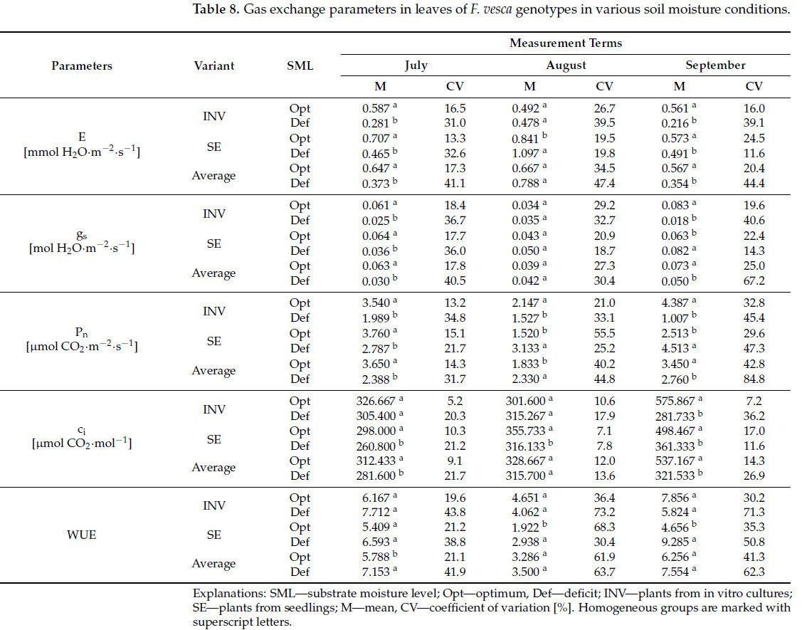 Это исследование позволило провести сравнительный анализ физиологических реакций растений Fragaria vesca сорта Rugia, полученных из in vitro культур и сеянцев, на дефицит воды в субстрате в условиях in vivo. Ключевые выводы следующие: