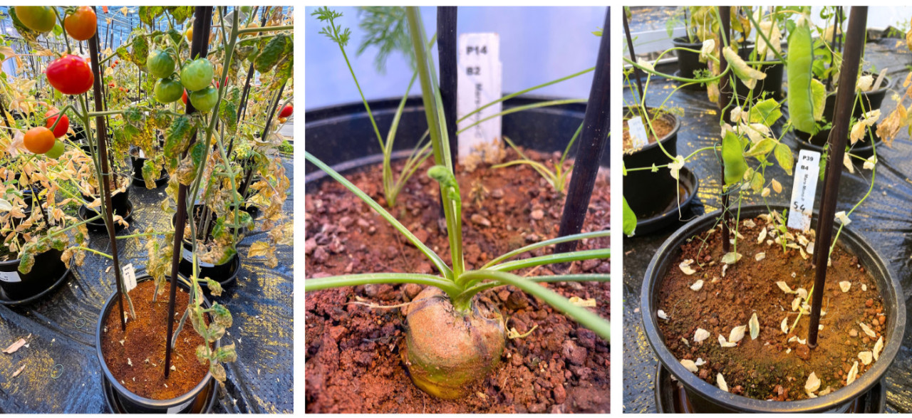 Для растений на этой искусственной марсианской ферме команда выбрала горох, морковь и помидоры. Исследование 2014 года показало, что все три вида способны расти в марсианском реголите. По словам Гонсалвес (Rebeca Gonçalves), знание о способности этих растений расти было ключевым, поскольку они искали ответ на другой вопрос. Они хотели узнать, как использовать растения-компаньоны и совмещение культур – древний метод посадки, при котором два или более растений выращиваются рядом – для повышения урожайности. Эти три вида также могут играть важную роль в питании в будущем.