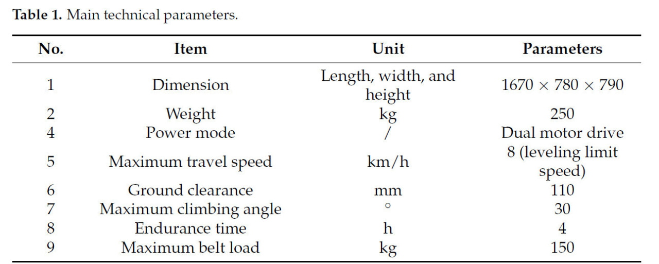 Чтобы решить проблему транспортировки пасленовых овощей в теплицах, во всем мире ведутся исследования автоматизированных транспортных средств или платформ в теплицах, а также приложений для продуктов. В зависимости от режима ходьбы их можно разделить на два типа: с гусеницами и без гусениц. В зависимости от метода управления они могут быть оснащены ручным управлением, дистанционным управлением, отслеживанием, автоматическим режимом работы и другими режимами управления [ 6 ]. Те, у которых есть гусеницы, включают механические, электромагнитные, штрихкодовые и другие типы, и могут быть разделены на два типа в зависимости от положения компоновки: подвесные рельсы и наземные рельсы [ 7 ]. Подвесные рельсы устанавливаются на верхней части теплиц с помощью рельсов, оснащенных подвесными крюками. Такие компании, как Hollandlift, Qingdao Zhengmu Farming and Animal Husbandry Technology Co., Ltd. (город Циндао, Китай) и Shanghai Fengjin Intelligent Technology Co., Ltd. (Шанхай, Китай), реализовали разработку дистанционного управления транспортировкой сельскохозяйственных материалов, сельскохозяйственного оборудования и фруктов. Между грядами прокладываются рельсы (из круглых труб или уголковой стали), а для междурядного сбора и транспортировки фруктов используются колесные транспортеры. Благодаря низкой стоимости оборудования, оно сейчас применяется в нескольких местах в провинциях Шаньдун и Хэбэй в Китае. Однако рабочая длина транспортного средства определяется диапазоном проложенной колеи, и оно не очень универсально. Что касается безрельсовых транспортных средств, существует два типа: колесные и гусеничные транспортеры или платформы [ 8 , 9 ]. Они имеют свои собственные характеристики, демонстрируя хорошую проходимость между рядами и сильную функциональную расширяемость и универсальность. Колесные транспортные средства относительно гибкие, но поворачивают по большому радиусу. В то время как гусеничные транспортные средства имеют небольшой радиус поворота, управление движением относительно сложно.