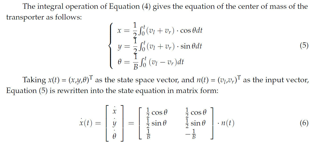 Из уравнения (6) следует, что центр масс гусеничного транспортера является функцией скорости движения левой и правой гусениц, а положение движения в любой момент времени может быть получено из скорости движения левой и правой гусениц, что также является теоретической основой для анализа управления движением гусеничного транспортера.