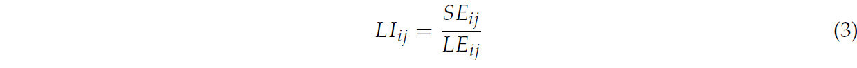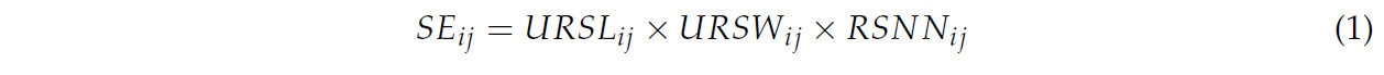 где 𝐿 𝑆𝑗 представляет собой показатель сохранения посевных площадей CRSC. Его конкретное значение — это чистая площадь посевных площадей, сохраненных CRSC на единицу обслуживаемой площади рисового поля. 𝐿 𝐼1 𝑗 представляет собой коэффициент использования земли при традиционном выращивании рассады, в то время как 𝐿 𝐼2 𝑗 представляет собой площадь CRSC. Общая площадь посевов, сохраненных одним центром CRSC за один сезон, может быть выражена как