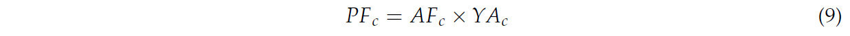 где 𝑃𝐺𝐼𝑗 представляет собой расширенную производственную мощность сельскохозяйственных культур, 𝑃CY𝑗 представляет собой потенциальную среднюю урожайность предыдущей культуры (культур).