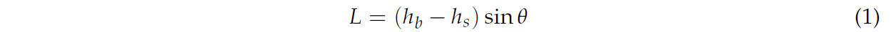 Длина валков стеблей зависит от высоты растения и угла наклона жатки [ 15 ]. Общая длина L валков стеблей определяется уравнением (1).
