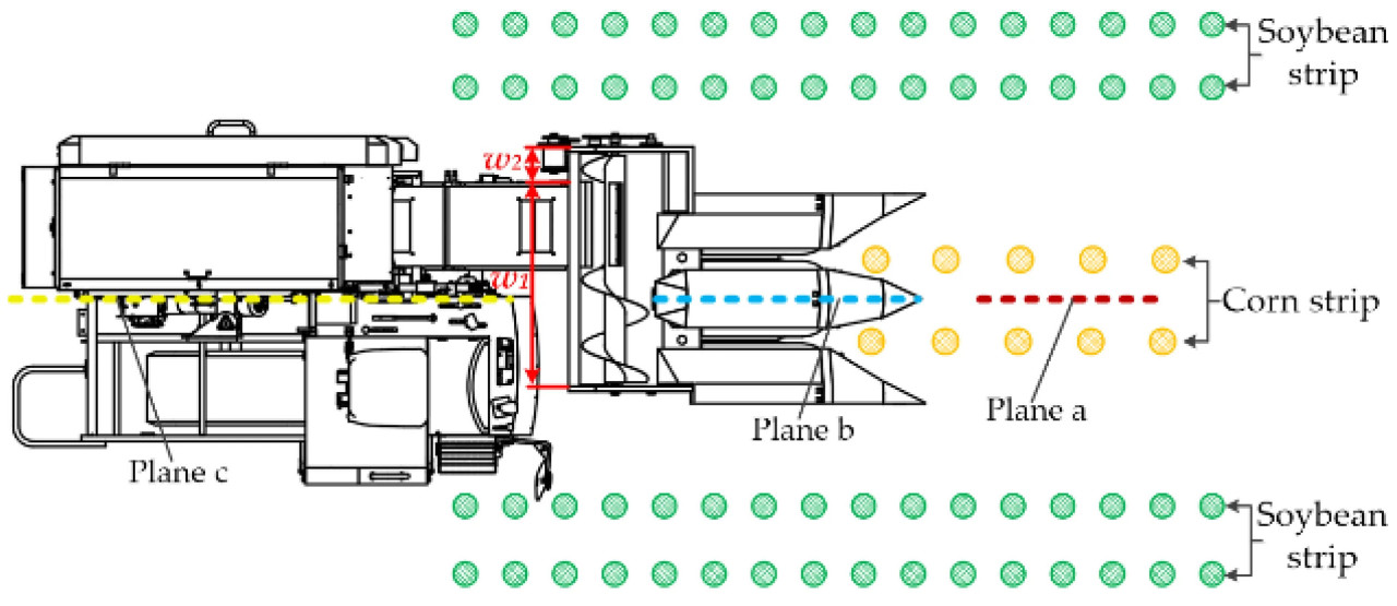Система полосового совмещения культур для сои и кукурузы основана на принципах эффективного использования световой энергии и технологии конфигурации поля. Этот подход решает задачу достижения высокой урожайности как высоких, так и коротких культур одновременно. Она позволяет фермерам поддерживать или даже увеличивать урожайность кукурузы, значительно увеличивая производство сои в течение одного вегетационного периода, достигая коэффициента эквивалента земли до 1,42 [ 1 , 2 , 3 ]. К 2022 году посевные площади, использующие этот метод в Китае, достигли приблизительно одного миллиона гектаров. Однако уникальные характеристики этой схемы посадки создают проблемы для традиционных комбайнов, часто приводя к неоптимальному качеству урожая [ 4 , 5 ].