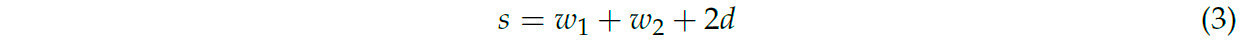 Учитывая, что w1 равно 1105 мм, w2 равно 175 мм, а d равно 3 мм, подстановка этих значений в уравнение (3) дает боковую ширину s рамы заголовка, равную 1286 мм .