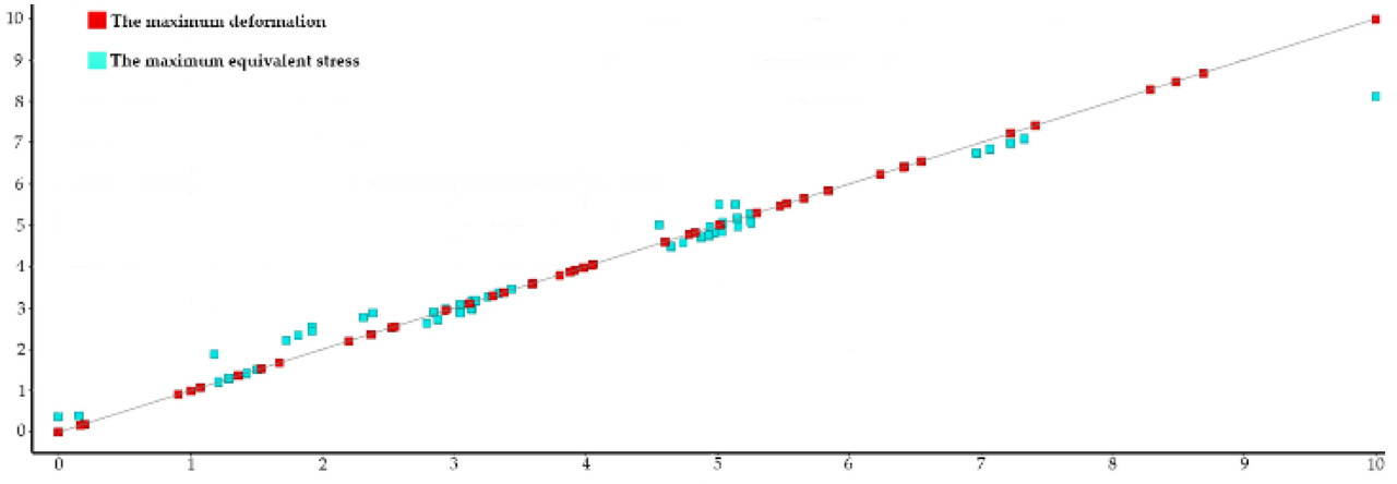 Рисунок 9. Точность суррогатной модели рамы кукурузной жатки.