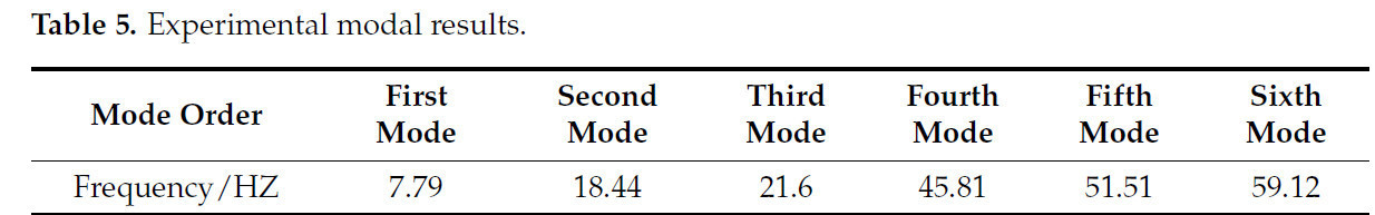 Для проверки точности конечно-элементной модели рамы кукурузоуборочной жатки, созданной на основе оптимизированных данных, был выполнен модальный анализ с использованием конечно-элементного программного обеспечения Ansys (2021r1). Также были проведены модальные испытания для определения собственных частот рамы кукурузоуборочной жатки в различных режимах и проведен сравнительный анализ этих двух режимов.