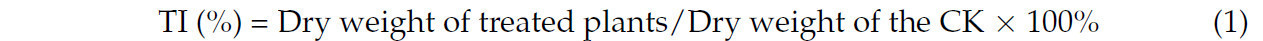 На основе биомассы был рассчитан индекс толерантности (ИТ) по уравнению (1) [ 19 ]: