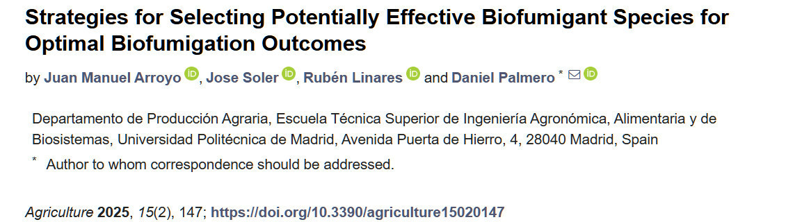 Арройо Дж. М., Солер Дж., Линарес Р., Палмеро Д. Стратегии выбора потенциально эффективных видов биофумигантов для достижения оптимальных результатов биофумигации. Сельское хозяйство. 2025; 15(2):147. https://doi.org/10.3390/agriculture15020147