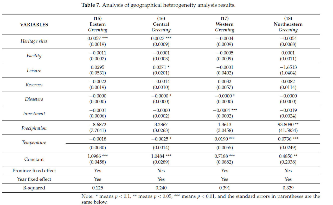 В-третьих, положительный эффект защиты объектов сельскохозяйственного наследия для экологического развития сельского хозяйства является неоднородным. В частности, эффект более выражен в восточных и центральных регионах, особенно в районах с более высоким уровнем развития искусственного интеллекта (AI) и более низкой урбанизацией.