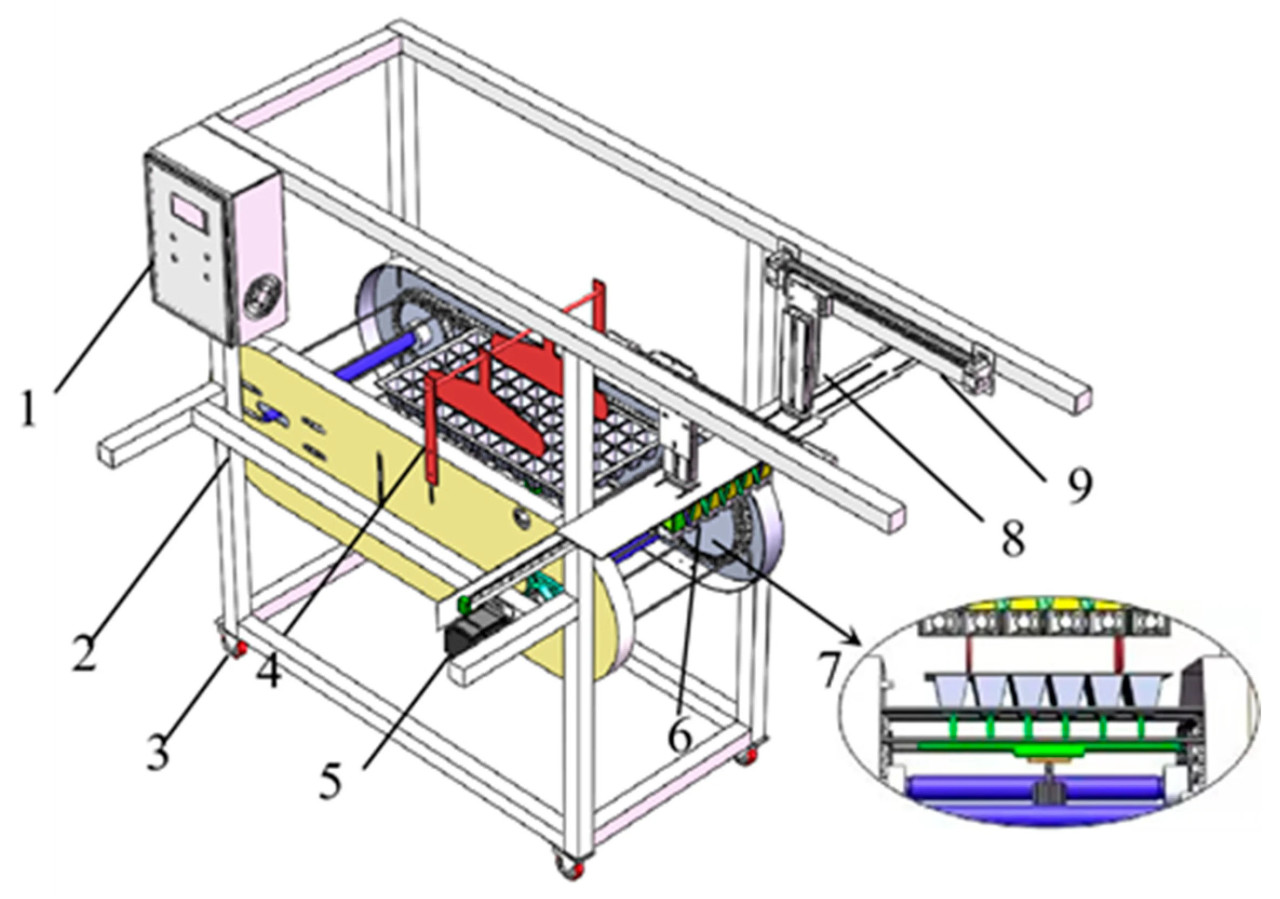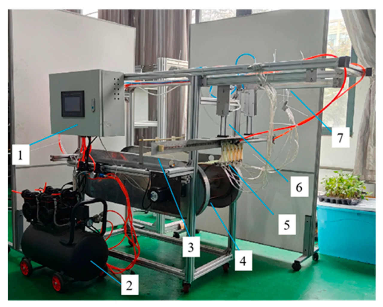 1. Liu, W.; Tian, S.J.; Wang, Q.Y.; Jiang, H.Y. Key Technologies of Plug Tray Seedling Transplanters in Protected Agriculture: A Review. J. Agric. 2023, 13, 1488. [Google Scholar] [CrossRef]