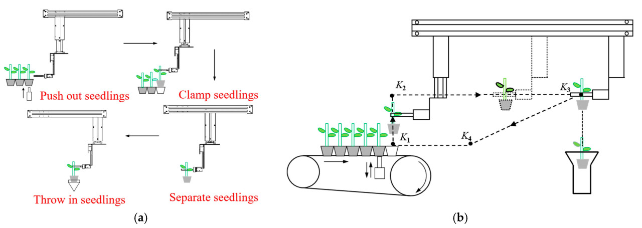 13. Yang, Q.Z.; Xu, L.; Shi, X.Y.; Ibrar, A.; Mao, H.P.; Hu, J.P.; Han, L.H. Design of seedlings separation device with reciprocating movement seedling cups and its controlling system of the full-automatic plug seedling transplanter. J. Comput. Electon. Agric. 2018, 147, 131–145. [Google Scholar] [CrossRef]